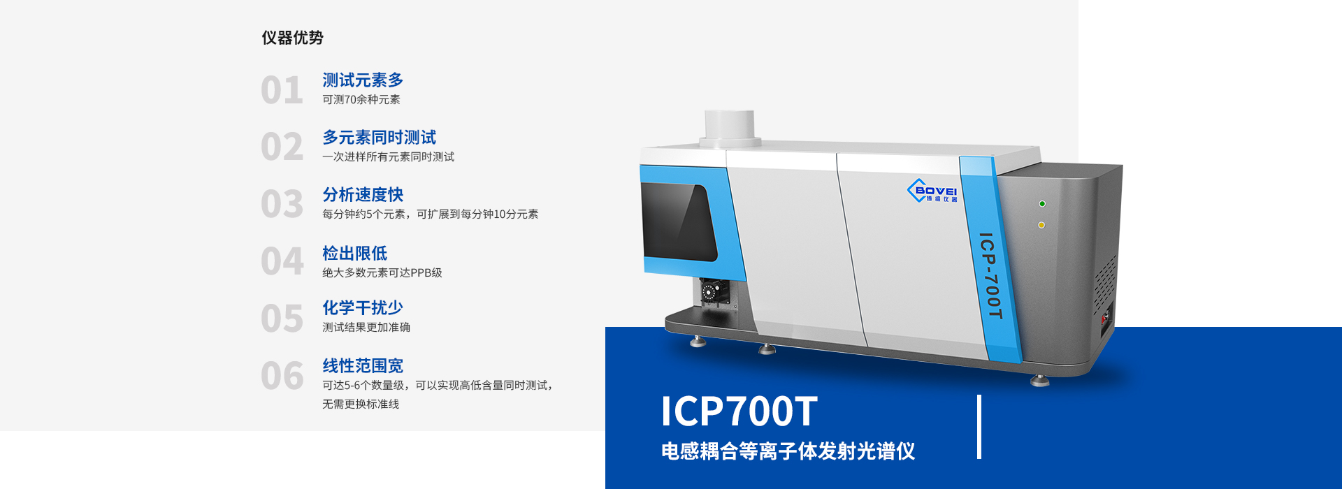 電感耦合等離子體發射光譜儀(ICP-OES)的應用與維護指南一、核心應用領域環境監測功能:檢測飲用水、廢水、土壤及大氣顆粒物中的痕量金屬(如鉛、汞、鎘、砷等),評估污染程度并追蹤污染源。案例:分析工業廢水中的重金屬含量,確保達標排放;監測土壤中重金屬積累,指導農業用地修復。地質與礦產功能:定量分析礦石中的微量元素(如稀土元素、貴金屬),輔助礦物勘探與資源評估。案例:通過檢測巖石樣品中的鍶、釹同位素比值,推斷地質年代與構造演化。食品與藥品安全功能:快速測定食品中的營養元素(如鈣...
